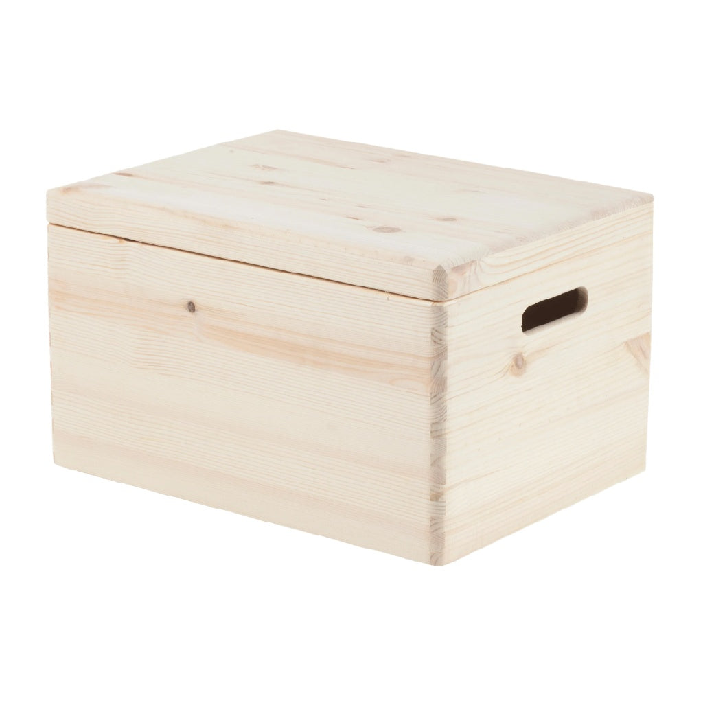 Grote Grenenhouten Opbergkist met Deksel en Handvaten